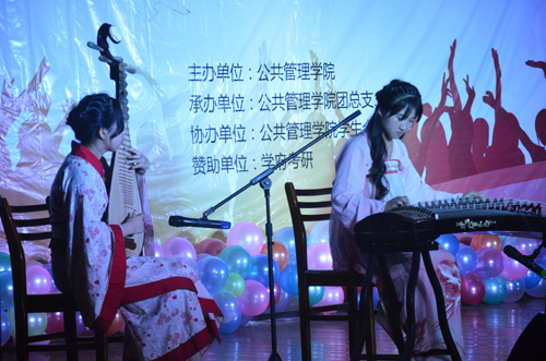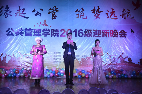 党总支书记王雪莹老师、党总支副书记乌日古木拉老师、公共事业管理系主任杨峰老师、工商管理系主任成小平老师、团总支书记富木仁老师、教师杨艳老师以及各兄弟院系学生会主席。此次晚会在动感十足的街舞表演中拉开序幕,同学们各种各样的节目令人应接不暇:深情独唱、逗趣话剧、热情舞蹈、诗意朗诵、B–box秀、以及充满古风的乐器合奏表演都赢来台下观众阵阵的呼声与掌声。