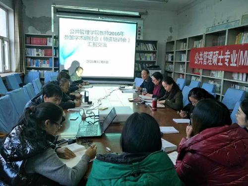 交流汇报主要涉及以下内容:杨艳老师分享了她参加全国第四届社会研究方法论坛的收获;陈玲老师分享了她参加第二届财税专业骨干教师高级研修班学习的收获;王永明老师分享了2016年度MPA院长工作会议的主要精神和会议内容;金晓蕊老师分享了第六届公共管理与政治学骨干教师研修班学习的体会;王雪莲老师分享了网店运营实战技能高级师资研修班以及首届互联网创新创业教育人才培养论坛的学习收获;甘月文院长分享了他参加的城市发展与社会治理论坛的心得体会;秦云老师分享了刚刚在海口结束的“大学生学业指导与生涯发展辅导能力提升”研修班学习的收获,并对本院学生工作的开展提出了几点建设性的建议。甘月文院长作了点评和总结,他强调:足球比赛结果