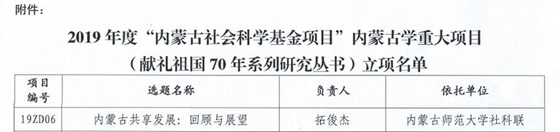 院长拓俊杰博士主持的“内蒙古共享发展:回顾与展望”(项目编号:19ZD06)获内蒙古学重大项目立项。作为献礼中华人民共和国成立70周年的内蒙古学重大项目,与公共管理足球比赛结果