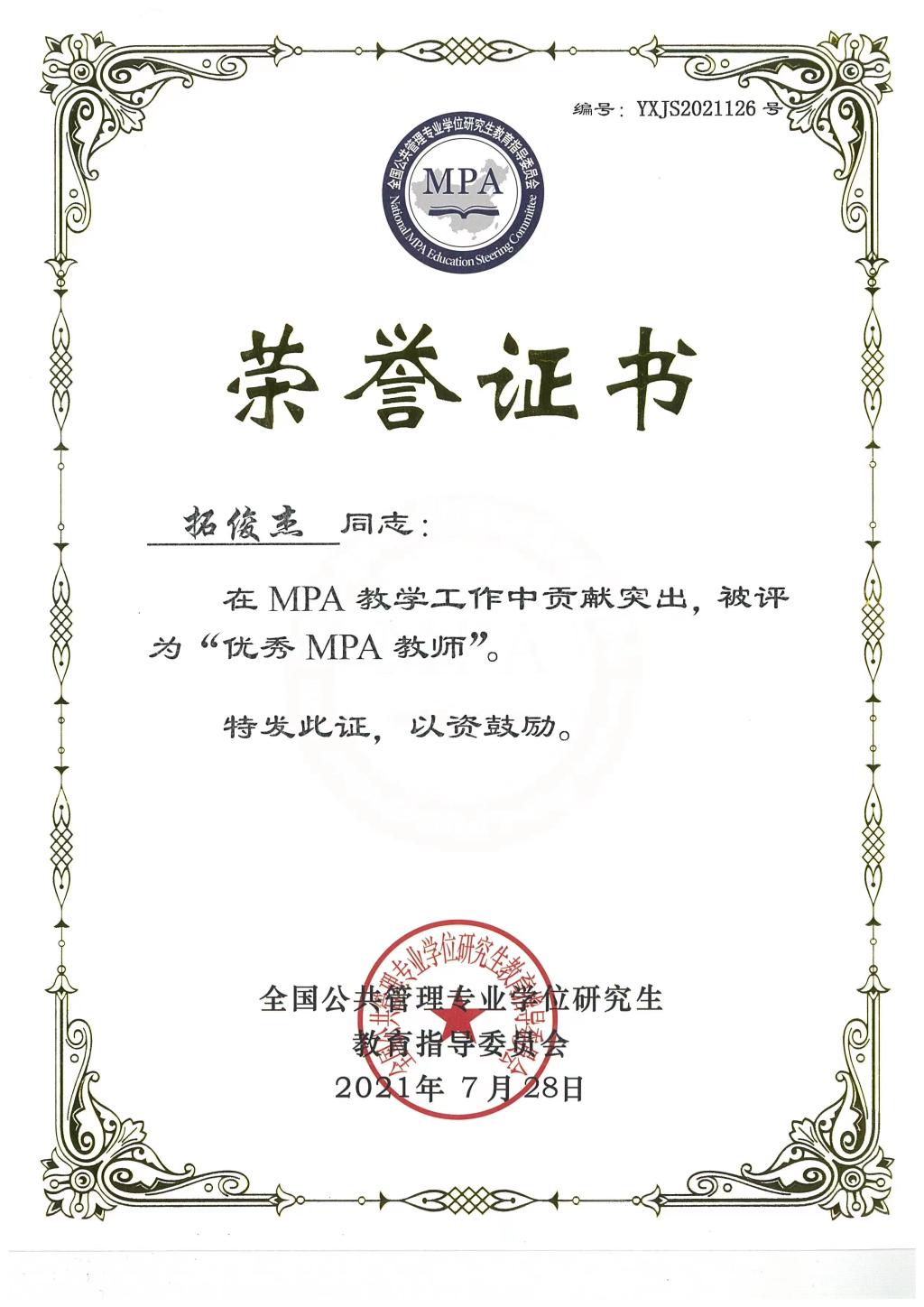 本次评选旨在表彰和奖励近年来在MPA教学和管理工作中做出突出贡献的个人,激励广大MPA教师做好本职工作,不断优化MPA师资队伍建设。