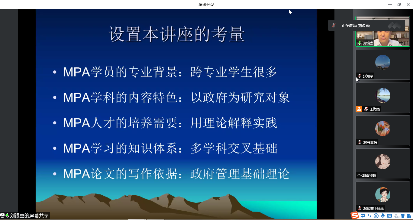 感谢刘教授精彩和丰富的讲座,鼓励老师、同学们在讲座的启迪下,进一步思考政府管理的基本问题,深入探寻政府管理的实践价值,聚焦政府职能、政府创新模式,以期在论文选题、科学研究中有一些新的想法和成果。