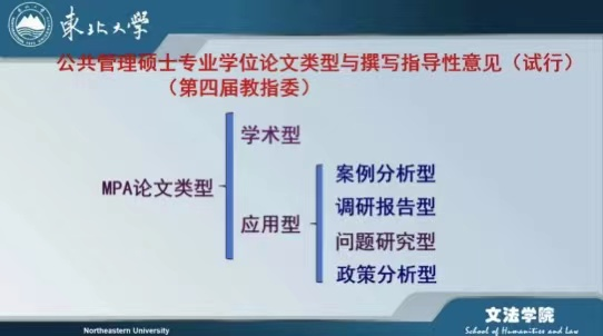 在讲座中,孙教授从MPA学位论文(应用型)分类、MPA应用型学位论文的选题及结构、MPA学位论文写作应注意的问题三个方面进行讲解。
