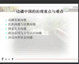 关于边疆治理研究及团队建设情况;之后,方教授基于党的二十大报告提出的“加快边疆地区建设,推进兴边富民、稳边固边”围绕边疆与边疆治理研究的兴起、多学科维度的边疆观、边疆中国的现实区情、边疆中国的地位和作用、边疆中国的治理重点和难点、边疆治理的方略等方面进行了深入的讲解和阐述。讲座结束后,方教授细致耐心地解答了老师和同学们提出的问题。最后,副院长王永明教授进行了总结,对方教授带来的精彩讲座表示感谢,并邀请方教授带着边疆治理的课题来内蒙古进行调研。