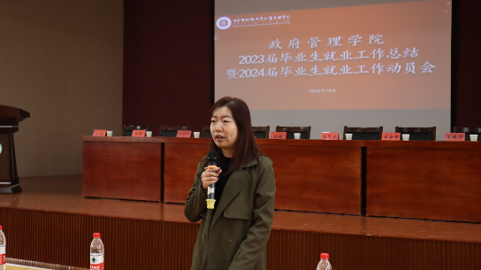院长王永明部署2024届毕业生就业工作并强调了要强化校友资源发挥,努力拓展就业,主动向校友所在事业单位、企业推荐优秀毕业生,不断拓宽校园招聘渠道并且夯实就业工作机制,提升就业服务质量,实行一生一策制度。王贺成老师做出政策解读,并提出毕业生要明确主要工作去向,了解更多就业项目,做好毕业季求职准备并完善好就业权益的保障,并对毕业生进行了面试等求职工作的指导与规划。李静芳老师为2024届毕业生做出就业规划建议,2020级政治学与行政学班寇雅娟同学作为优秀学生代表讲话。