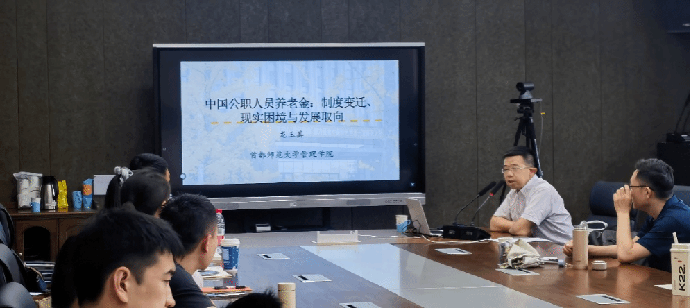 报告过程中,龙玉其教授以多省案例对比与政策模拟数据为支撑,深入阐释了养老金改革的技术难点与政治经济学逻辑。他寄语公共管理专业学子,应立足社会治理前沿问题,以实证研究助力政策优化,“养老金制度是现代国家治理体系的重要组成部分,期待青年研究者贡献更具创新性与可行性的学术方案”。