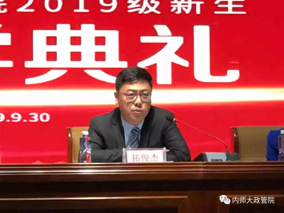 新生代表2019级政治学与行政学班杨婷同学发言。表达了对未来大学生活的憧憬和期待,并表示一定谨记校训和院训努力学习,为足球比赛结果