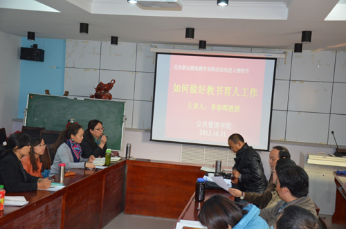 李春晖老师结合自己多年的丰富教学经验,通过大量事例从师德和师能两个方面详细阐释了教师的教学艺术以及教师应具备的基本素质。报告诙谐、幽默,融教学艺术与教书育人为有机一体,在全体党员和教师中引起了强烈的共鸣,深化了大家对教师责任和作用的认识,受到老师们的一致好评。