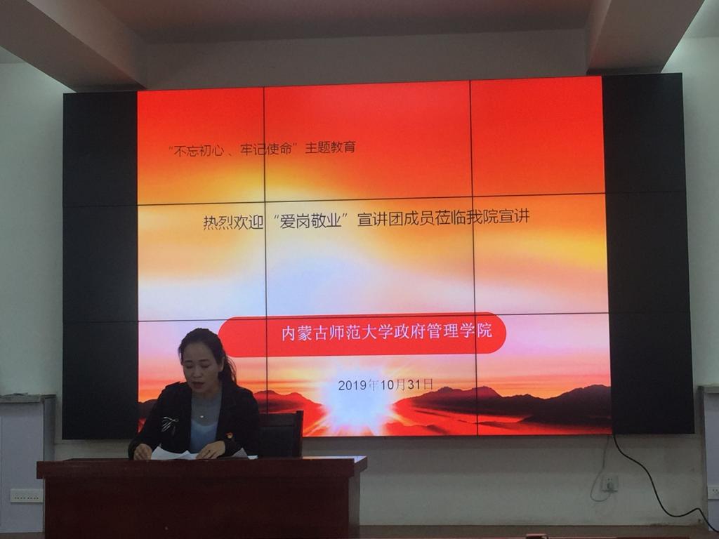 党总支举行“不忘初心,牢记使命”主题教育专题报告会,邀请学校2019年度“三育人先进个人”张晓阳、朱晓红老师进行典型事迹巡讲报告。本次专题报告由公共事业管理系党支部组织委员、院工会主席于莎日娜主持和点评,院党总支书记樊荣忠、足球比赛结果