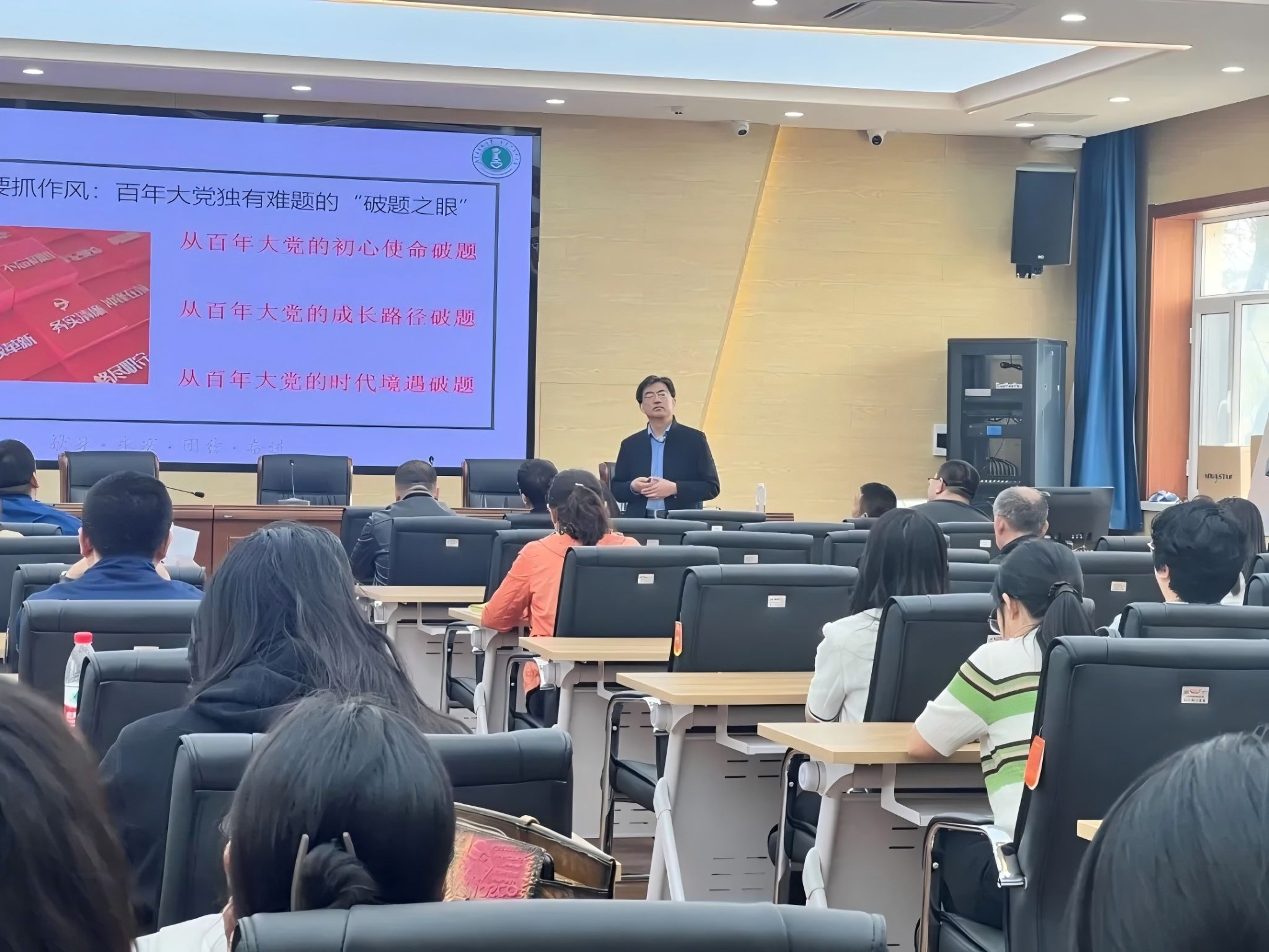 院长张瑞军教授进行专题辅导,各单位党委成员以及师生党员代表共同参与学习。