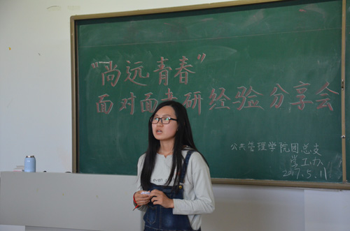 为了让同学们更好的掌握未来的罗盘、规划自己的人生,树立迎接未来的信心,以“尚远青春”为主题的系列经验交流会于2017年5月11日行知楼208教室举办。