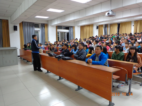 2013年10月14日晚19:00在行知楼323教室,开展了关于大学生职业生涯规划的专题讲座。