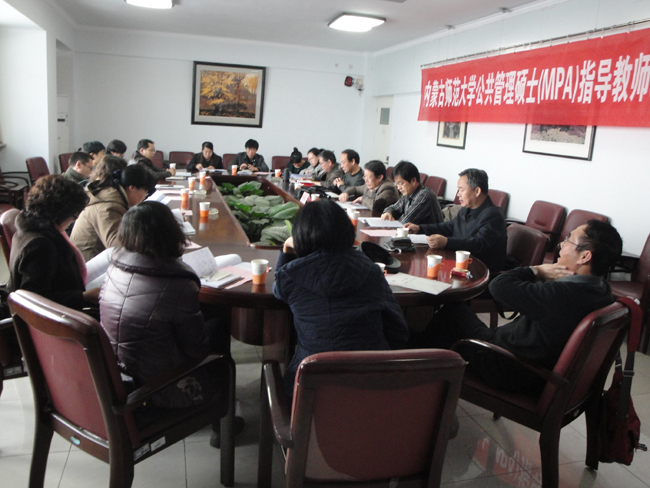 在培训暨座谈会上,甘月文主任首先介绍了我校MPA教育的历程、管理方式、导师队伍及办学特色;接着朱立言教授重点讲了在全国历次MPA教育评估过程中的看到的问题以及经验、教训,他指出MPA教育的本质是干部的能力建设,而能力建设的一个重要环节就是学位论文的写作,因此在历次MPA教育评估中非常看重各院校MPA学位论文的质量;朱立言教授列举了在MPA教育评估中所发现的学位论文方面存在的问题,提出了改进的对策建议。公共政策与公共事务管理方向导师丁龙召教授、行政管理方向导师陈江教授和阿明布和教授、公共经济管理方向导师曹霞教授、土地资源管理方向导师张欲凤教授分别就自己在指导MPA学位论文过程的体会和感受发言,提出了自己的困惑与纠结之处。会上,各位MPA导师积极为提高我校MPA学位论文质量、办好MPA教育建言献策,达到了预期效果。最后,研究生院党委书记、副院长张玉柱作了总结发言。