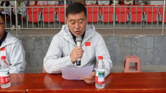 党委书记巴图致词,鼓励师生以运动凝聚力量,将拼搏精神融入治学育人,为足球比赛结果
