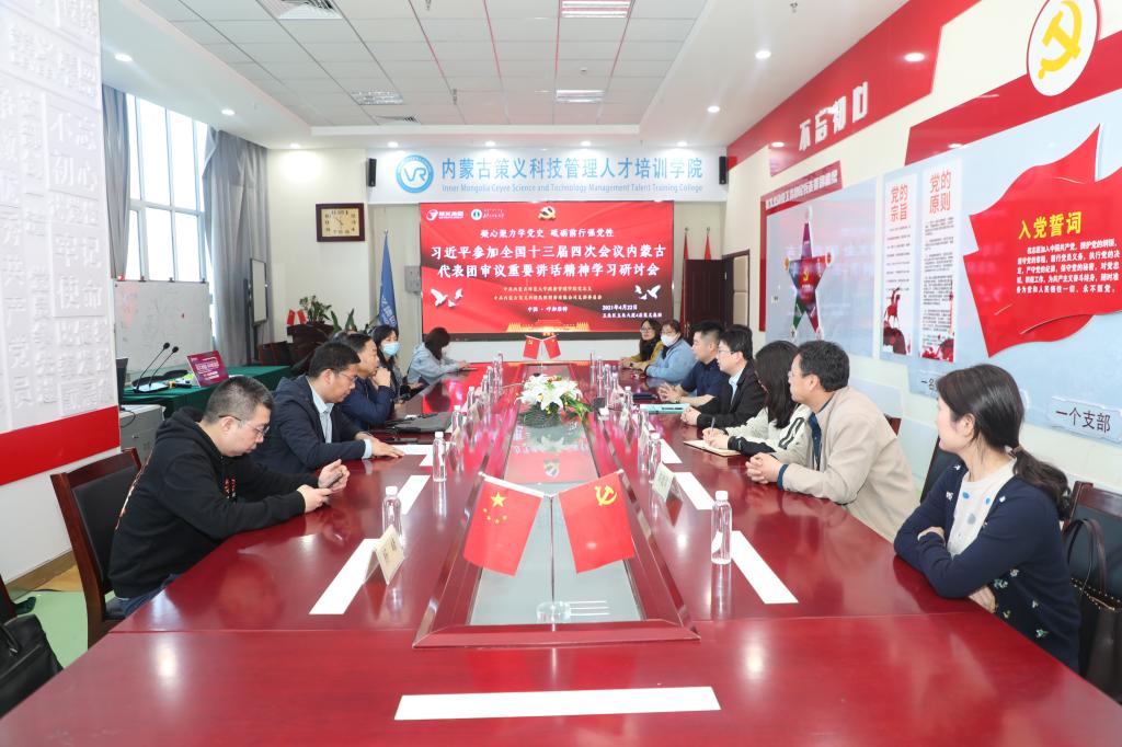 参观结束后,樊荣忠书记传达了习近平总书记在参加全国十三届四次会议内蒙古代表团审议时的重要讲话精神。全体参会人员围绕讲话内容,聚焦“凝心聚力学党史 砥砺前行强党性”的主题,进行了研讨发言。