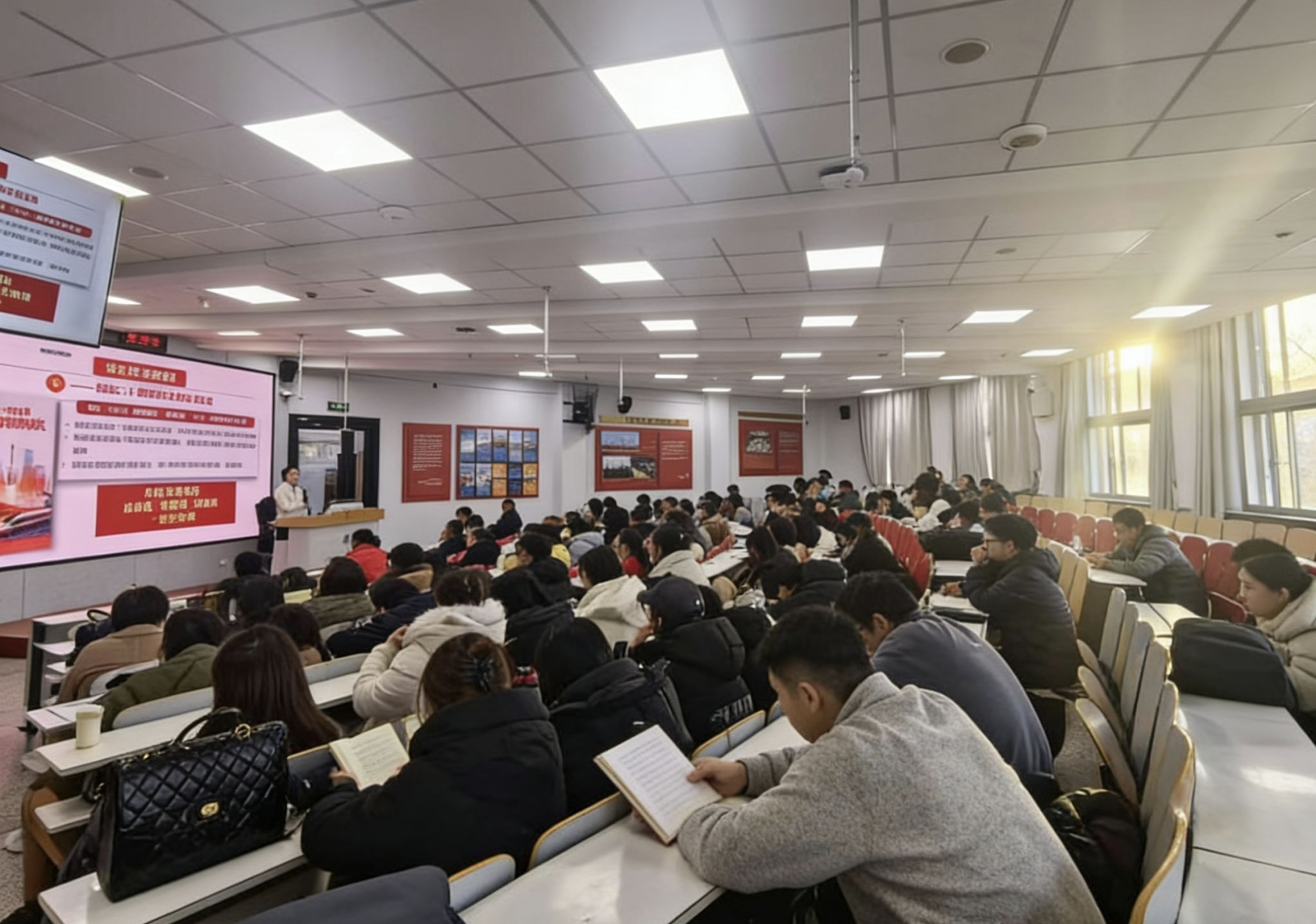 副教授白文静进行专题辅导,各单位全体教职工以及学生代表参加报告会。