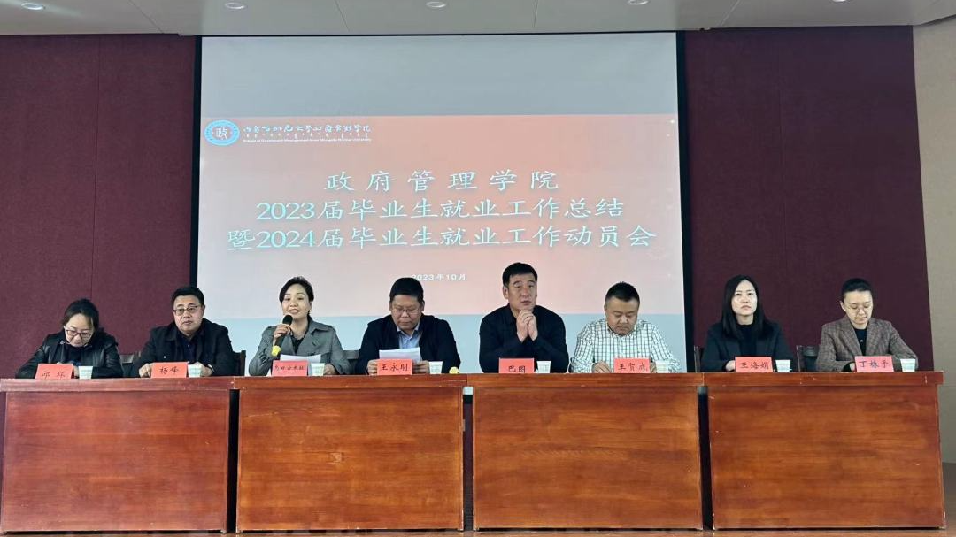 党委副书记、副院长乌日古木拉、招生就业处职业发展指导中心主任王贺成、学生工作与就业办公室主任王洁琼、团总支副书记丁姝予、公共事业管理系主任杨峰、行政管理系主任王海娟、政治学与行政学系主任邱环、辅导员娜娜等教师以及毕业班本科生、研究生同学出席本次会议。